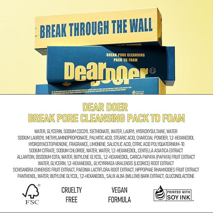 • 🟡 1-MINUTE DEEP PORE CLEANSE: Purify your pores and refresh your skin with a quick 1-minute daily ritual powered by Charcoal Powder. Papaya Extract teams up with AHA, BHA (Salicylic Acid), and PHA to gently exfoliate dull skin and loosen buildup. It starts as a creamy, clay-like mask—just add water, and it transforms into a luxurious mousse-like lather.