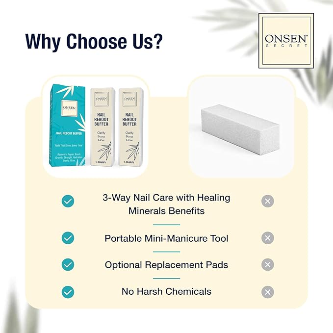 Onsen Secret Professional Nail Buffer Block | 4-Way Buffing for Natural Shine & Healthy Natural Nails - Includes 2 Extra Shine Pads, Salon-Quality, Post-Gel & Acrylic Recovery | 2 Pack