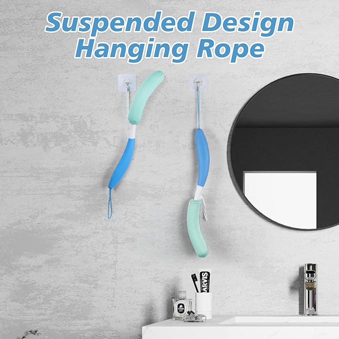 • 【Ergonomic Handle Design】The curved handle of the shower back brush is ergonomic, and can easily reach and clean your back, hands, lower legs, feet and other hard-to-reach parts without bending over to clean. Back brush features a textured plastic handle that provides a comfortable, firm grip even in wet conditions. You can also easily hold the handle when you apply body wash in the shower.