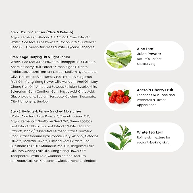 • ✔️ IMPROVES THE APPEARANCE OF FINE LINES AND WRINKLES: Help soften the appearance of fine lines and wrinkles with this facial kit. It supports smoother-looking skin, giving you a more youthful and refreshed look that you’ll love to see in the mirror.