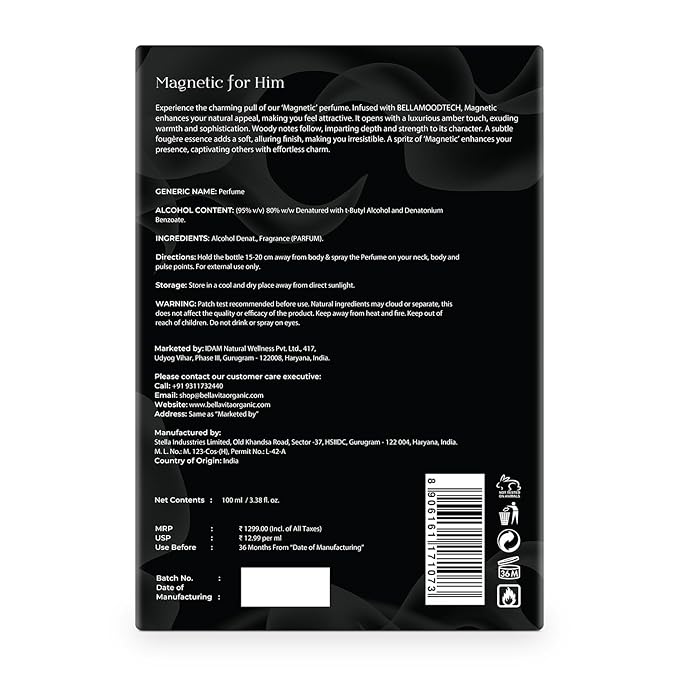 BELLAVITA Luxury Mood Collection MAGNETIC Perfume for Men 100ml | Pheromone Inspired Technology Long Lasting Fragrance | Notes of Grapefruit, Jasmine and Vanilla | Gourmet, Spicy Premium Fragrance