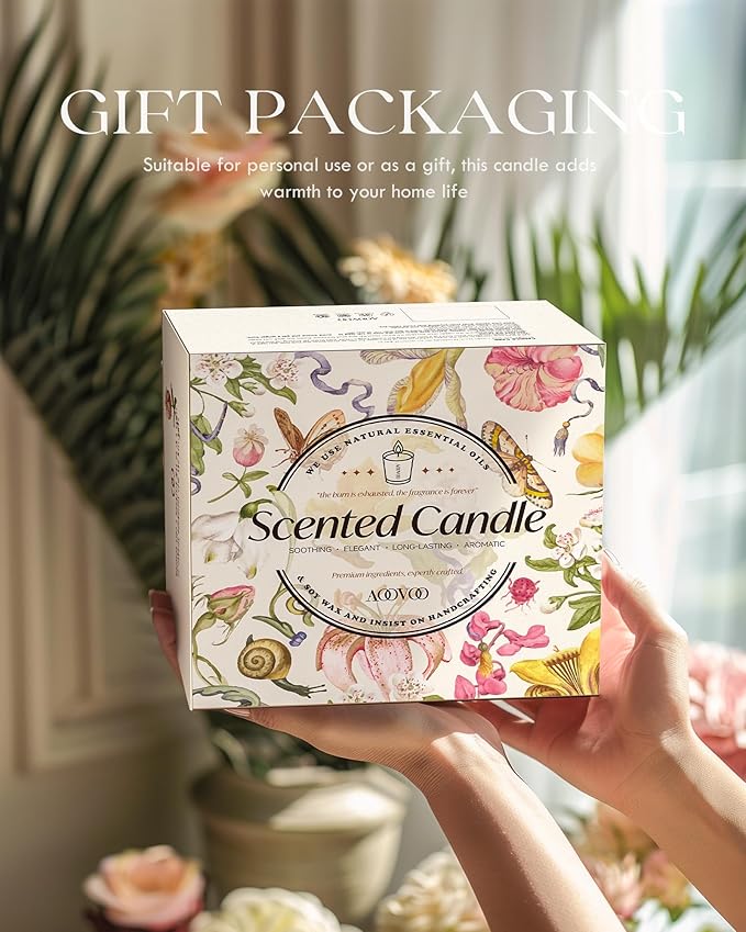 • Perfect for Gifting: No extra wrapping needed. Presented in an elegant gift box with beautifully crafted glass jar candles and gold foil labels, boasting an array of delightful scents that make this gift truly special.