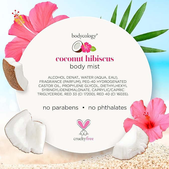 Bodycology Long-Lasting Fragrance Body Mist, Coconut Hibiscus, 8 fl oz