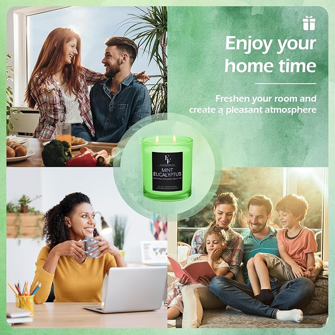 • Fresh Summer Fragrance: Blending natural eucalyptus and cool mint aroma, scented candle for home brings a refreshing fragrance like a forest breeze, instantly awakening vitality, suitable for use in living rooms, study rooms or bathrooms to create a comfortable summer space