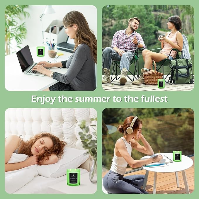 • Refreshing Summer Aroma: Citronella candle blends natural citronella oil, cool mint and lively lemongrass, bringing a refreshing fragrance like a garden after rain, instantly awakening summer vitality, perfect for creating a refreshing atmosphere during summer days and evenings