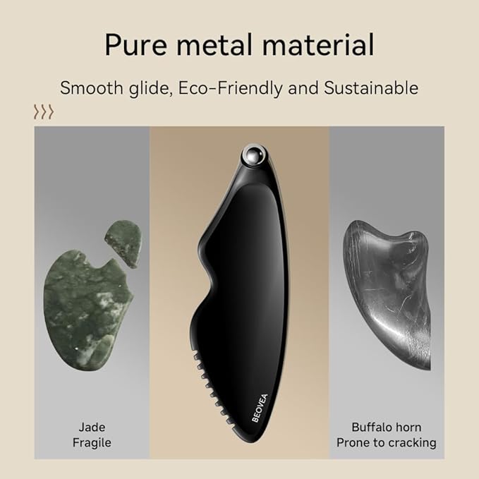 • Premium Quality for All Skin Types – Crafted from high-quality metal, this gua sha facial tool offers durability and a luxurious feel, suitable for all skin types. Its smooth, ergonomic design makes it ideal for a gentle facial massage or a full-body relaxation session.