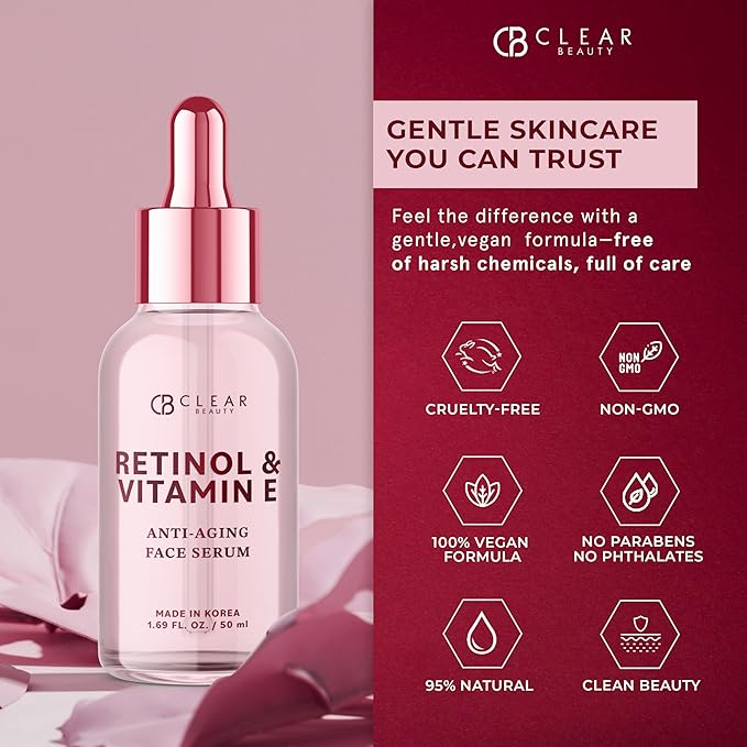 Retinol & Vitamin E Facial Serum – Dermatologist-Tested, Anti-Aging, Hydrating & Revitalizing Korean Skincare – Vegan, Clean Beauty, Cruelty-Free, Sulfate-Free, Non-GMO – 1.69 fl. oz.