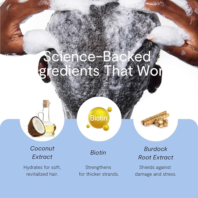 • Coconut Extract, Biotin & Burdock Root Extract assist to build hair strand resilience & deliver a boost of hydration for optimal scalp & hair health.