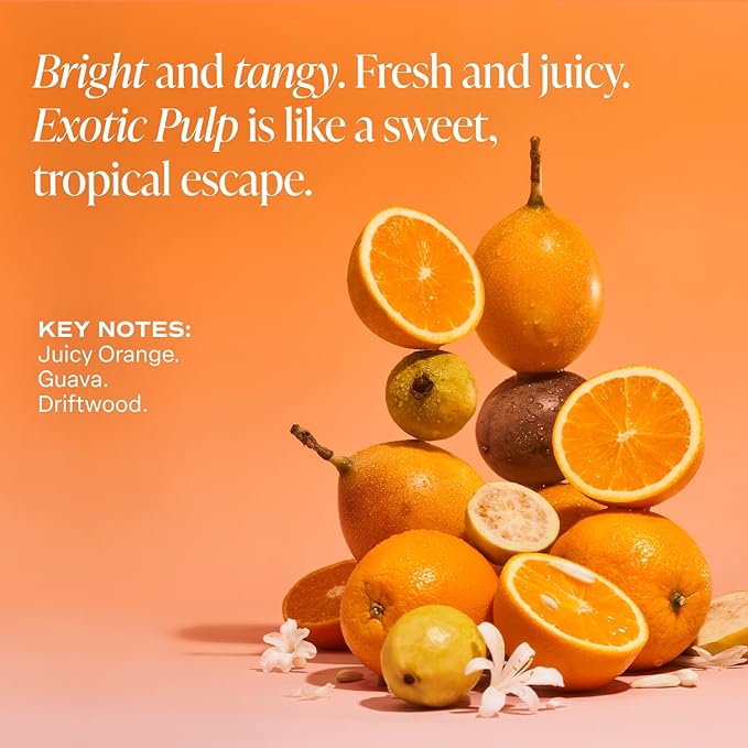 • EXOTIC PULP FRAGRANCE: Orange, Guava, and Passionfruit create a vibrant and tropical explosion of juicy citrus, sun-ripened fruit, and exotic sweetness, creating a scent that feels bright, playful, and full of energy. Exotic Pulp is bright and tangy, like an exciting tropical escape.