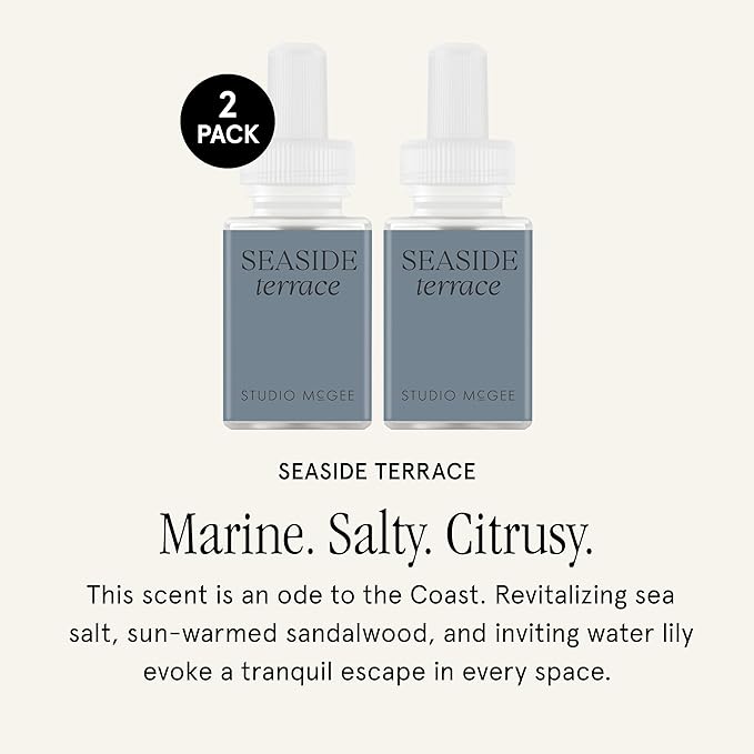 Pura x Studio McGee Home Scent Refill - Smart Air Diffuser - Up to 120-Hours of Luxury Fragrance per Refill - Home Essential - Clean & Safe Diffuser Fragrance - 2 Pack, Seaside Terrace