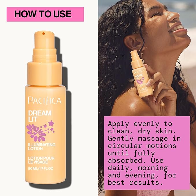 • DREAMLIT ILLUMINATING LOTION: The final step for instant radiance! Dreamlit is a silky, antioxidant-rich lotion that doubles as a lightweight moisturizer and glow-enhancing primer. Infused with hyaluronic acid, vitamin C, and natural extracts like peach and squalane, it blurs the look of pores and fine lines while imparting an ethereal glow. Wear it alone for a fresh-faced sheen or under makeup for a lit-from-within luminosity.