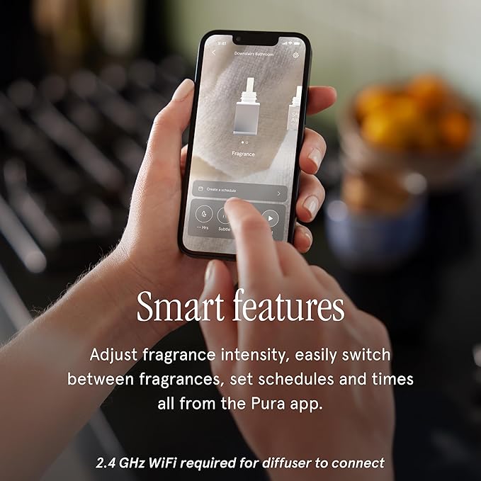 • Long-Lasting Room Scent: When using 2 vials and diffusing 6–8 hours per day at a medium intensity, the Pura 4 diffuser scents last up to 6 weeks in a medium-sized room and the Pura Plus diffuser scents last up to 4 weeks in an open concept space