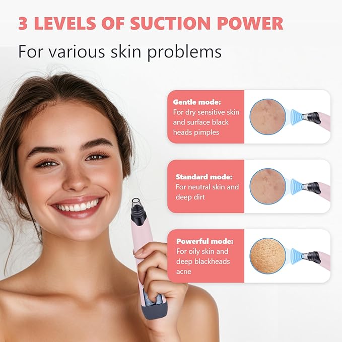 • 【Adjustable mode 】Our black head remover for face has 3 different powerfu suction levels suitable for different types of skin to achieve genuine deep cleaning.designed for various skin concerns from blackhead removal to reducing fine lines.