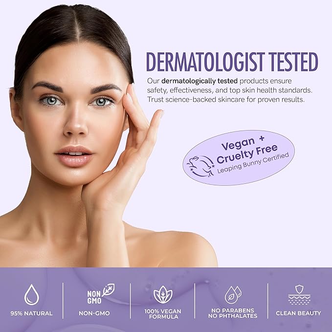 • PURE & GENTLE FORMULA – Made with 95% natural ingredients. Vegan, cruelty-free, non-GMO, and free from parabens, sulfates, and phthalates. Safe for all skin types, including sensitive skin.
