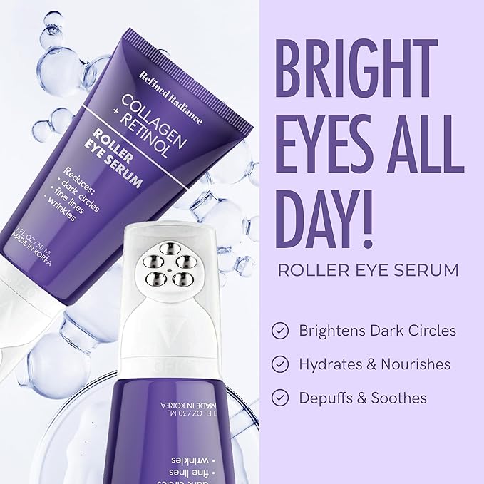 Collagen & Retinol Eye Roller – Dermatologist Tested, Anti-Aging, Korean Skin Care – Reduces Fine Lines, Firms Under Eyes, Improves Tone – Vegan Clean Beauty Formula – 1.0 FL. Oz