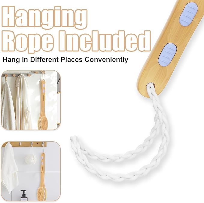 • Anti-slip grips(back scrubber): There is a non-slip rubber patch and a hanging rope at the handle for your comfort and ease of mind while brushing
