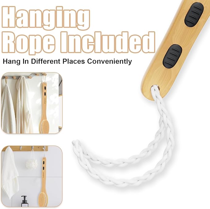 • Anti-slip grips(back scrubber): There is a non-slip rubber patch and a hanging rope at the handle for your comfort and ease of mind while brushing
