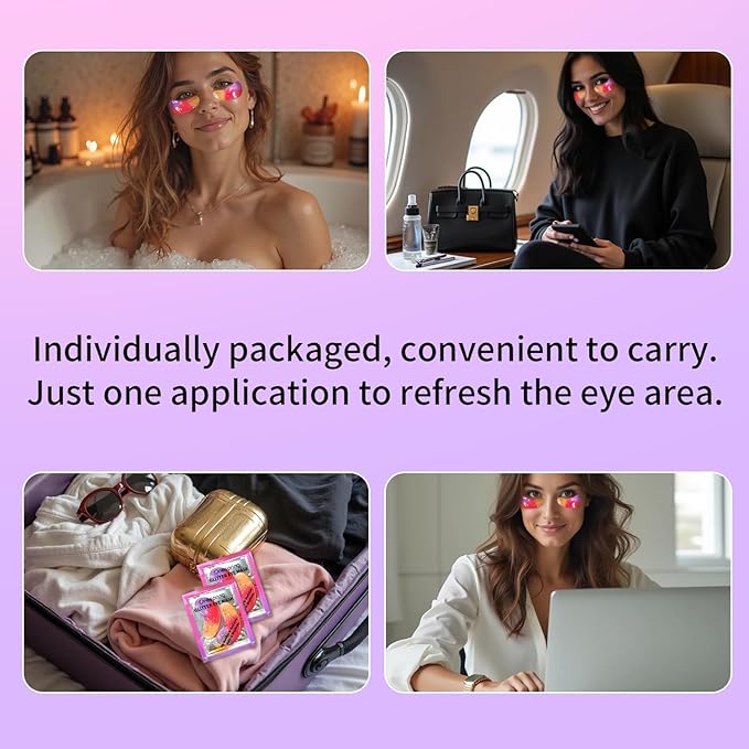 • Convenient & Clean: Individually packaged for optimal hygiene and ease of use, these eye masks are ideal for home, office, or travel. Simply open, apply to the clean eye area, and relax for 15-20 minutes. The practical design makes daily eye care effortless, effective, and enjoyable. Transforming ordinary moments into a luxurious spa-like experience.
