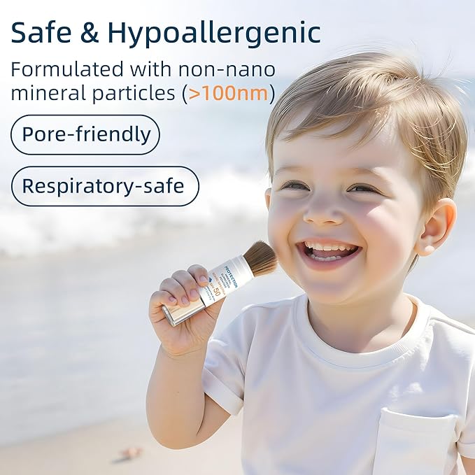 • Non-Greasy: Unlike heavy or oily sunscreens, our powder formula feels weightless on the skin and leaves no sticky residue, ideal for scalp and hairline. Enjoy the sunshine with your kiddo without worrying about scalp sunburn