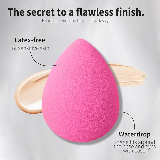 • High-Performance Teardrop Sponges: 2 PCS Makeup Blenders for precise eye/nose detailing & large-area blending. Latex-free, non-absorbent, super soft. Wet/dry use for seamless makeup finish