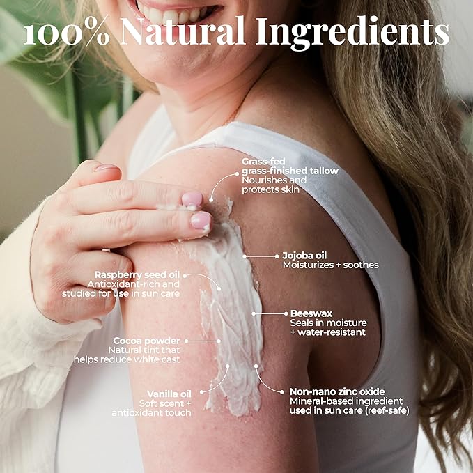 Amallow - Tallow Sun Balm with Zinc Oxide – Tinted Mineral Sun Balm with Cocoa Powder – Natural, Non-Nano Zinc Oxide, Organic Oils – No White Cast – Handcrafted in the USA – 4 oz