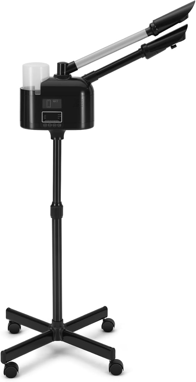• ROTARY AND MOVEABLE - 360 degree rotary spray pipe allows to moisturize your face; Rolling wheels makes it convenient to move this facial skin care machine around the room. There is an aroma diffuser at the nozzle mouth, you can put the aroma diffuser and use it