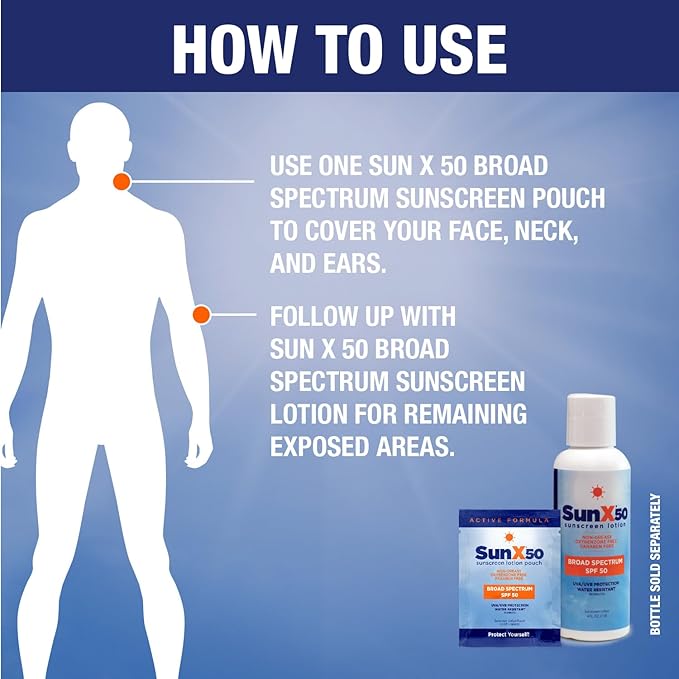 • SPF 50 ON-THE-GO - These travel size sunscreen SPF 50 packets with dry towelettes are small, lightweight, and carefully sealed! Bring Sun X 50 single-use reef safe sunscreen SPF 50 packets with you on your next outdoor activity