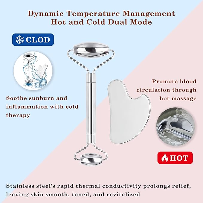 ✅【Dual-Mode Application】Dynamic temperature management, refrigerate and use in summer to soothe sunburned skin and calm puffiness; Place in hot water for warm massage to relieve shoulder and back tension in winter.Guasha facial tools for women’s skincare routine,cooling face sculpting eyes roller Gua Sha for daily use or self.