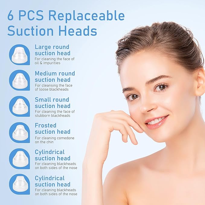 • 【What you'll get】Blackhead remover x 1, replaceable head x 6, stainless steel blackhead remover tools x 6, USB charging cable x 1, product manual x 1, a variety of accessories only to give you a better shopping experience.