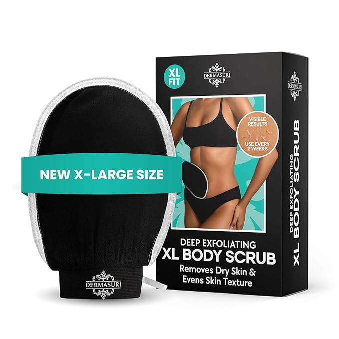 Dermasuri Deep Exfoliating Glove – Korean Exfoliating Mitt, Body Scrubber for Shower, Buffs Dry & Dead Skin, Keratosis Pilaris Treatment, Body Scrub, Skin Exfoliator for Men & Women, Reusable - XL