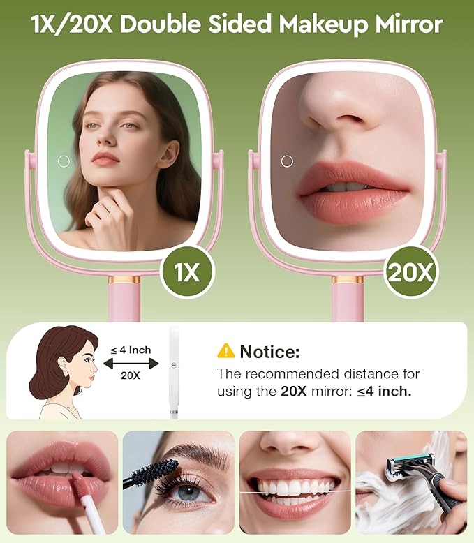 • 【1X / 20X Magnification Sides】 Features two sides: a standard 1X reflection for an everyday view, and a 20X lighted magnifying mirror with a built-in light for precise, close-up detail work