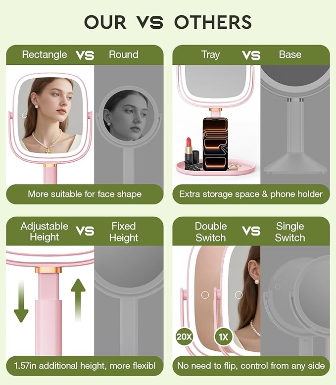 • 【Versatile Tray Base & Phone Holder】 Great mirror for desk! The sturdy base doubles as a handy tray to organize daily essentials like makeup, jewelry, or tools. It also functions as a phone stand, so you can enjoy videos or follow tutorials while getting ready