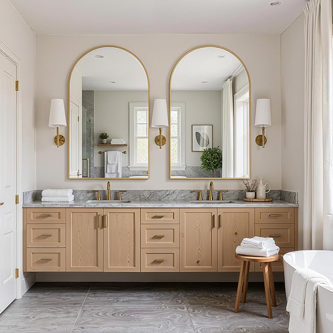 • Sturdy Frame and Arched Design:This arched bathroom vanity mirror is made of high-quality aluminum alloy frame,which is lightweight and rust-resistant.The arched design adds a stylish and modern feel.With special anti-corrosion treatment,it can withstand various climate conditions and is durable.