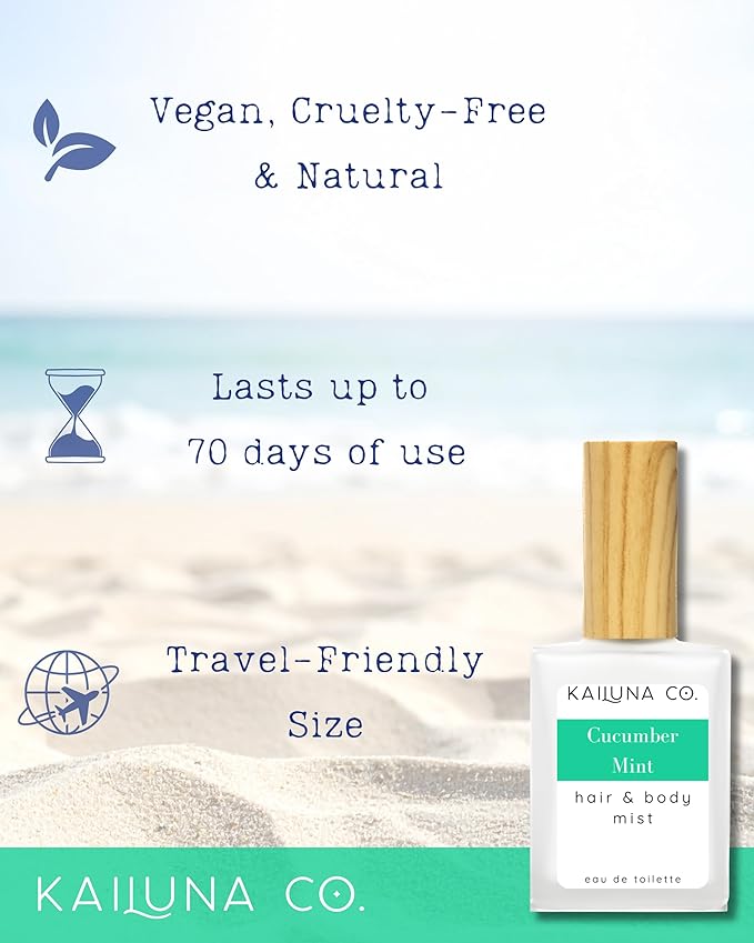 Cucumber Mint Natural Hair & Body Mist Spray, Pure Essential and Fragrance Oils, Alcohol-Free, Handmade in California, 0.5Fl Oz